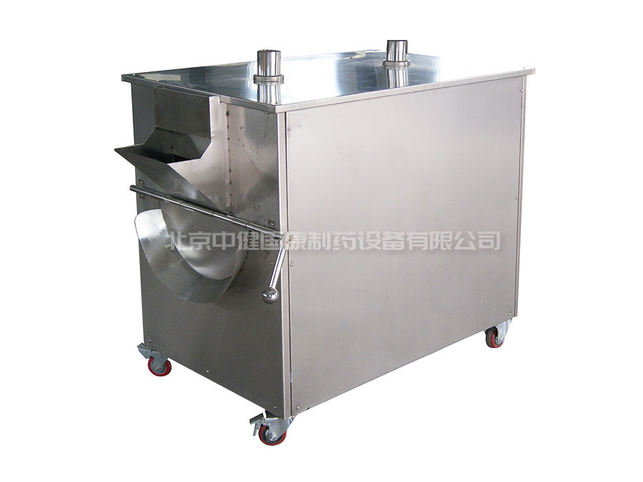 由炒藥滾筒、動力系統(tǒng)及熱源等部件組成,操作時,將藥材通過筒口加入,蓋如筒蓋板(為了散熱常在蓋板上留有散熱孔)。加熱后,開動滾筒,借動力裝置滾筒做順時針方向轉動。使筒壁均勻受熱。當藥材炒到規(guī)定程度時,打開蓋板,按動是鈕,使?jié)L筒反向旋轉,即可使藥材由出料口傾出。滾筒式炒藥機的溫度可根據(jù)不同的藥材及不同的炒制方法進行調(diào)節(jié)。此設備應用范圍較廣,以炒炭、炒焦、麩炒、土炒及燙制各種藥材常用。
